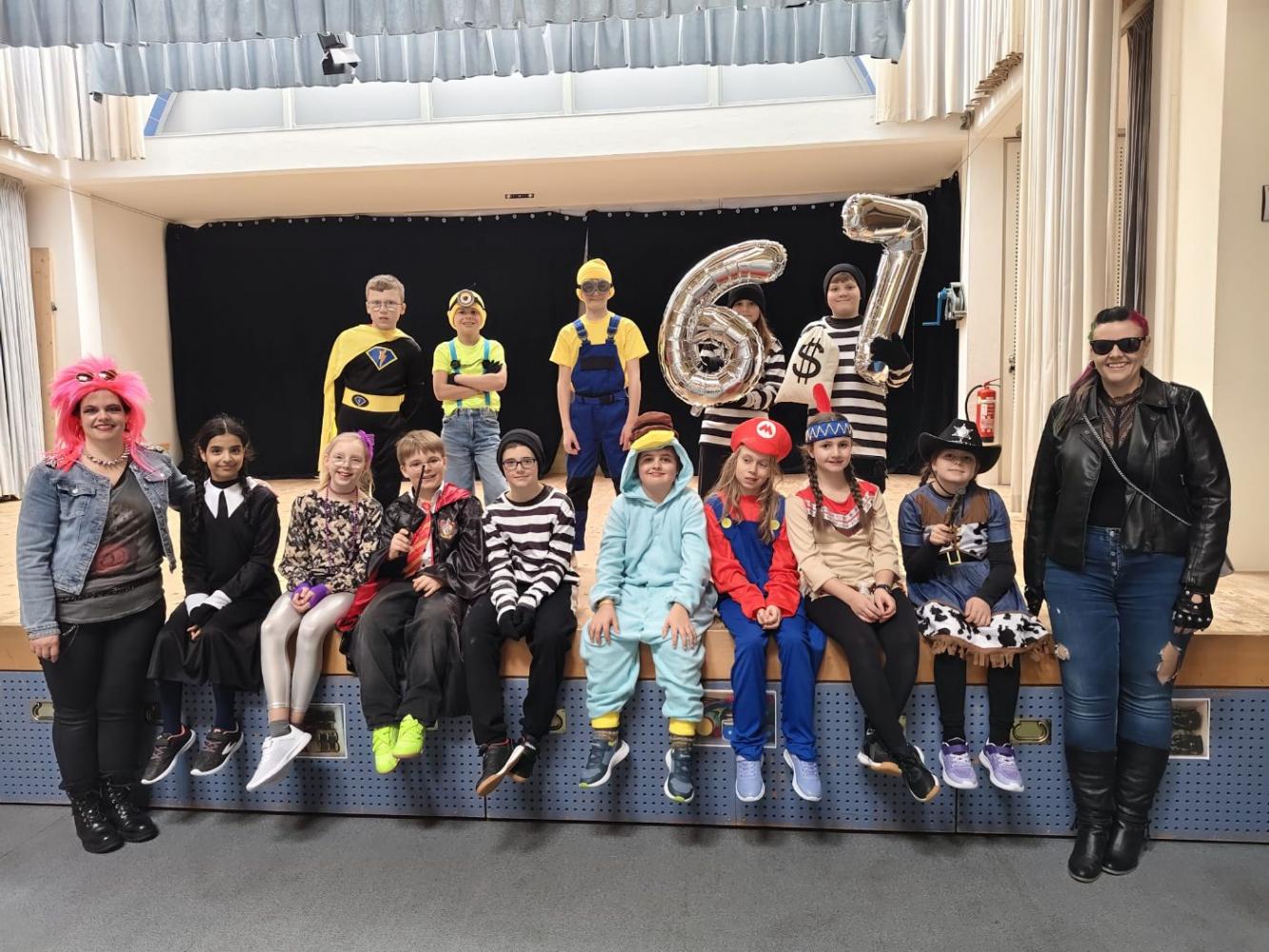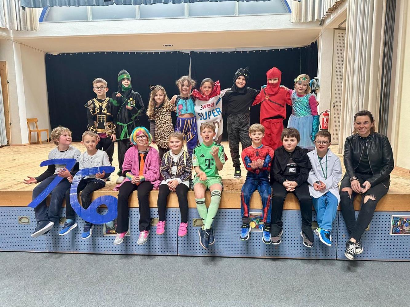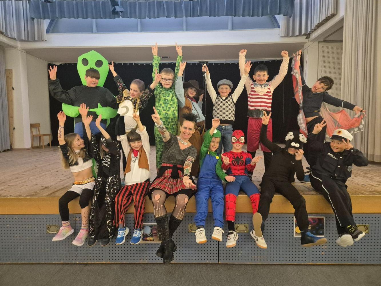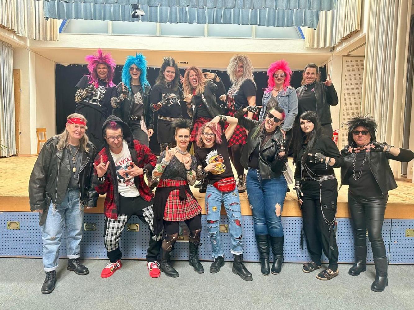 Schon in der Früh staunte man über die vielen kreativen Kostüme: Prinzessinnen, Superhelden, Tiere, Clowns und andere lustige Figuren tummelten sich im Schulhaus. Unsere Lehrerinnen und Lehrer sorgten heuer als coole Punks und Rocker für besondere Highlights und brachten alle Kinder zum Schmunzeln.