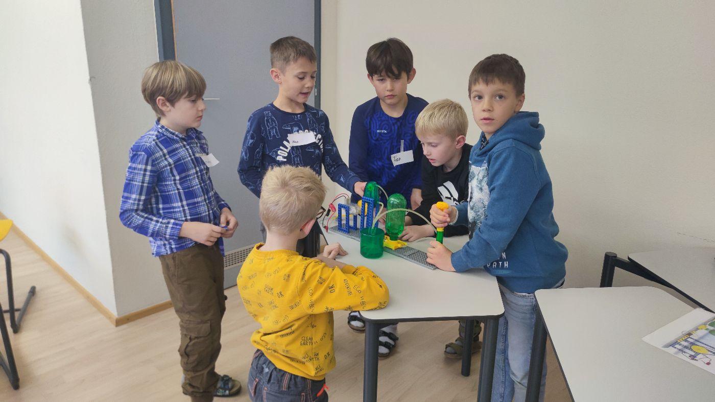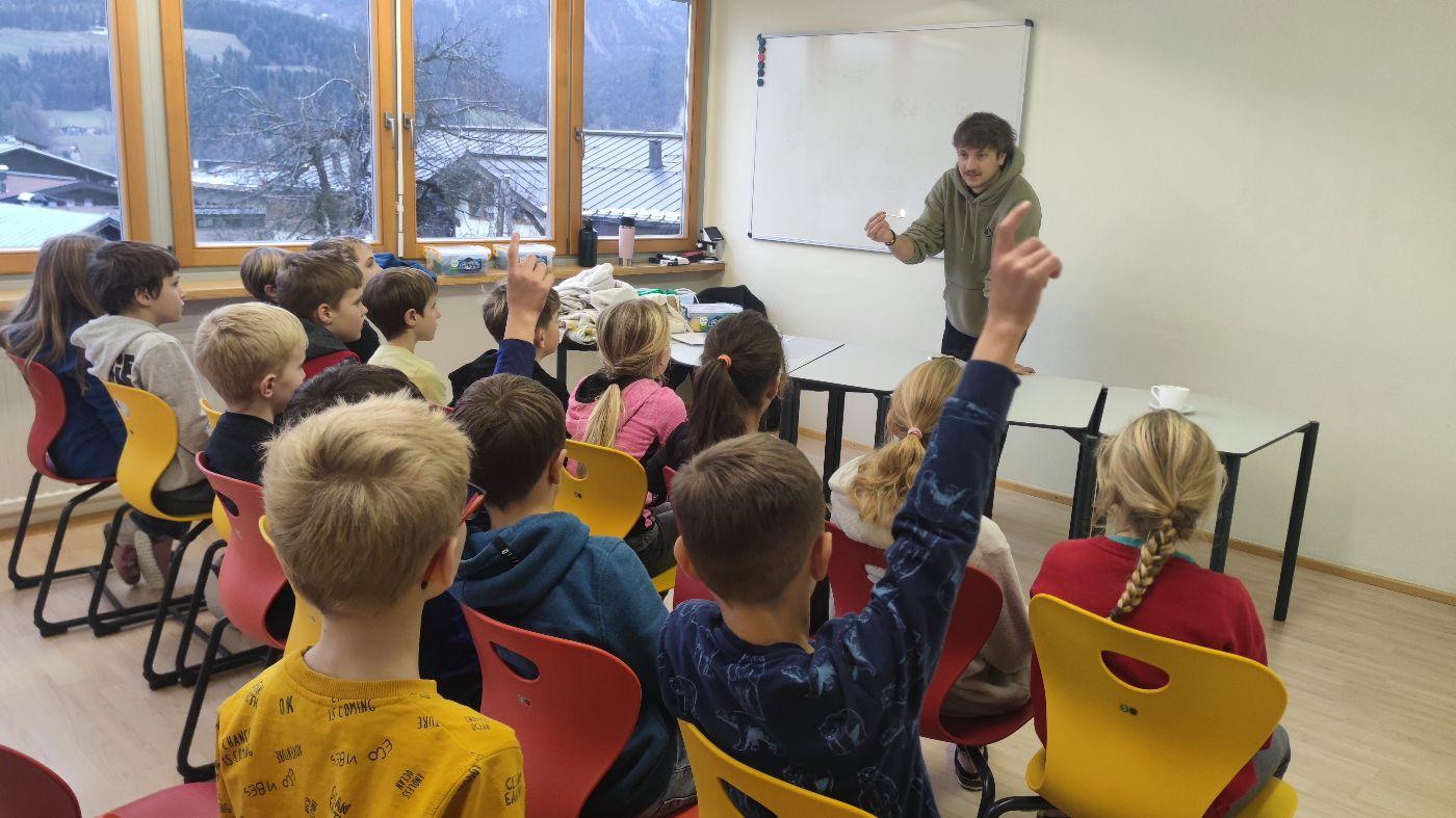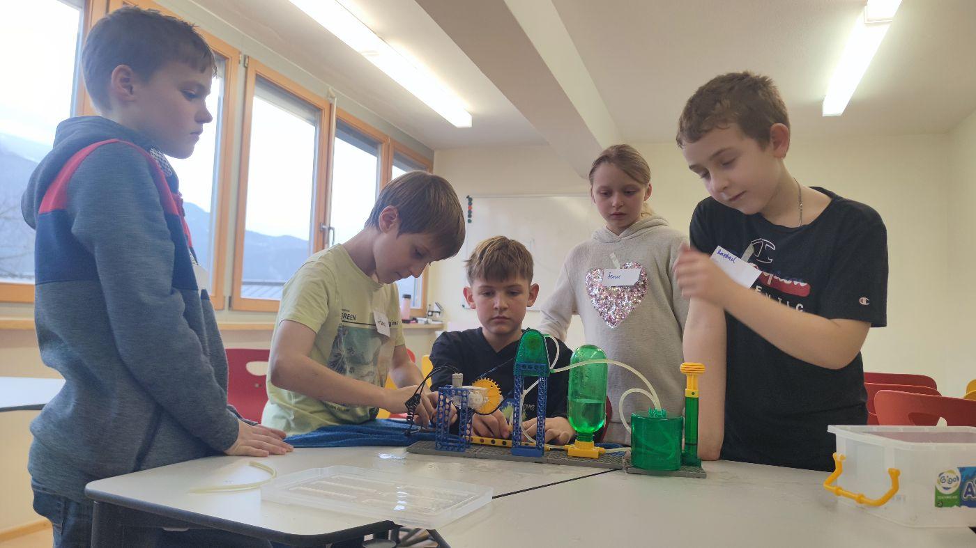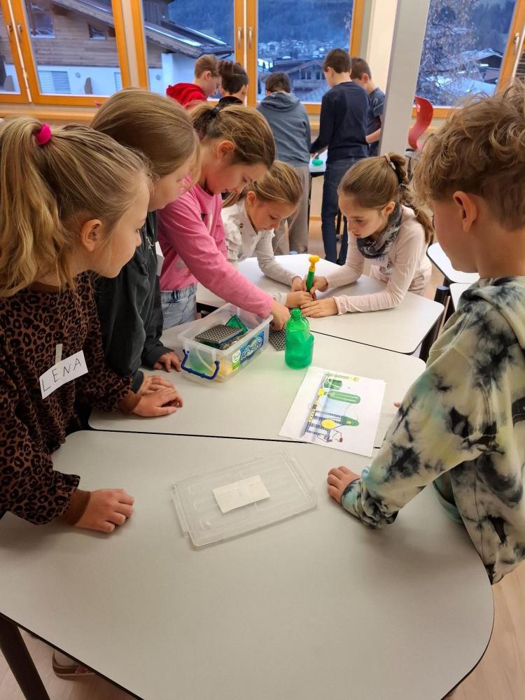 Energieberater Max erklärte anschaulich, woher Strom, Wärme und Licht kommen und wie wir sie im Alltag nutzen. Ein besonderer Schwerpunkt lag auf erneuerbaren Energieformen wie Sonne, Wind und Wasserkraft, die für Tirol eine wichtige Bedeutung haben. Danach konnten die Kinder ihr Wissen praktisch anwenden und bauten in Gruppen mit viel Begeisterung eigene Modelle von Wasserkraftwerken, Pumpspeicherkraftwerk um genau zu sein. Zum Abschluss wurde gemeinsam überlegt, wie Energie gespart werden kann und warum dies für eine nachhaltige Zukunft wichtig ist.