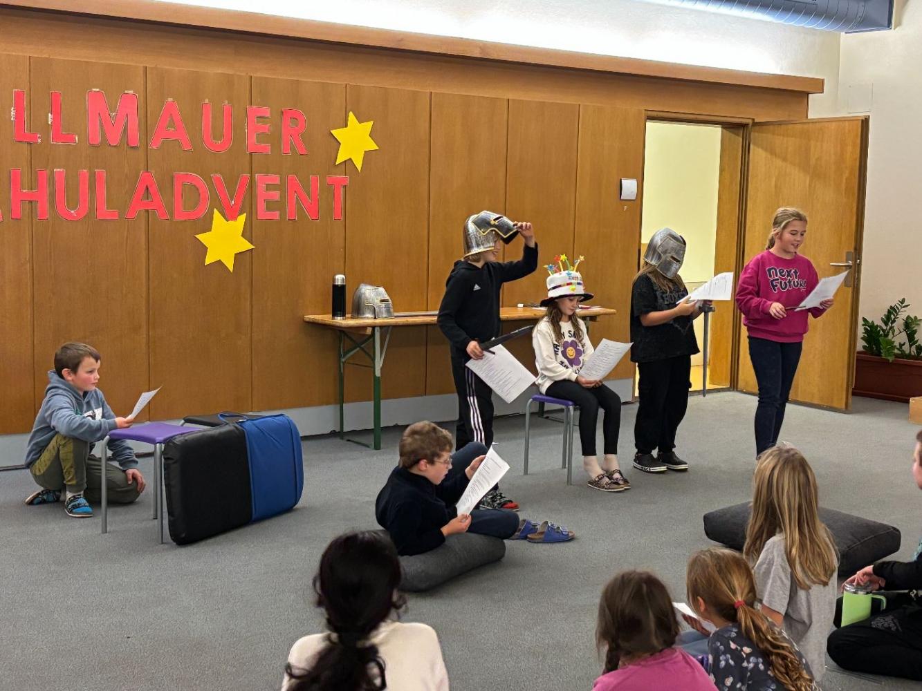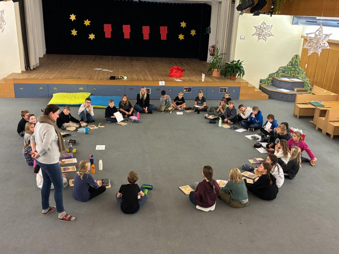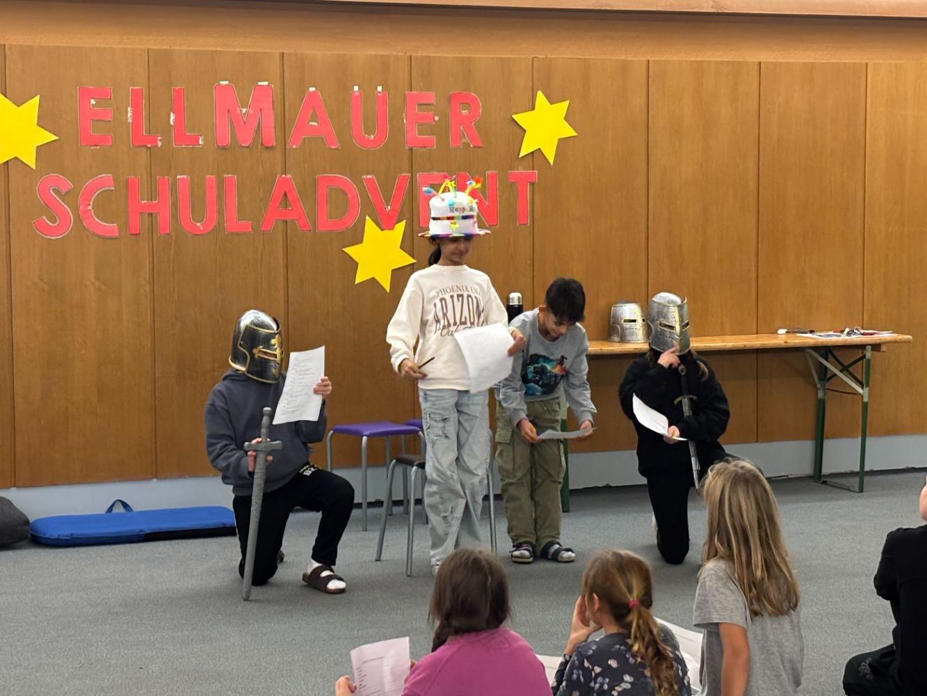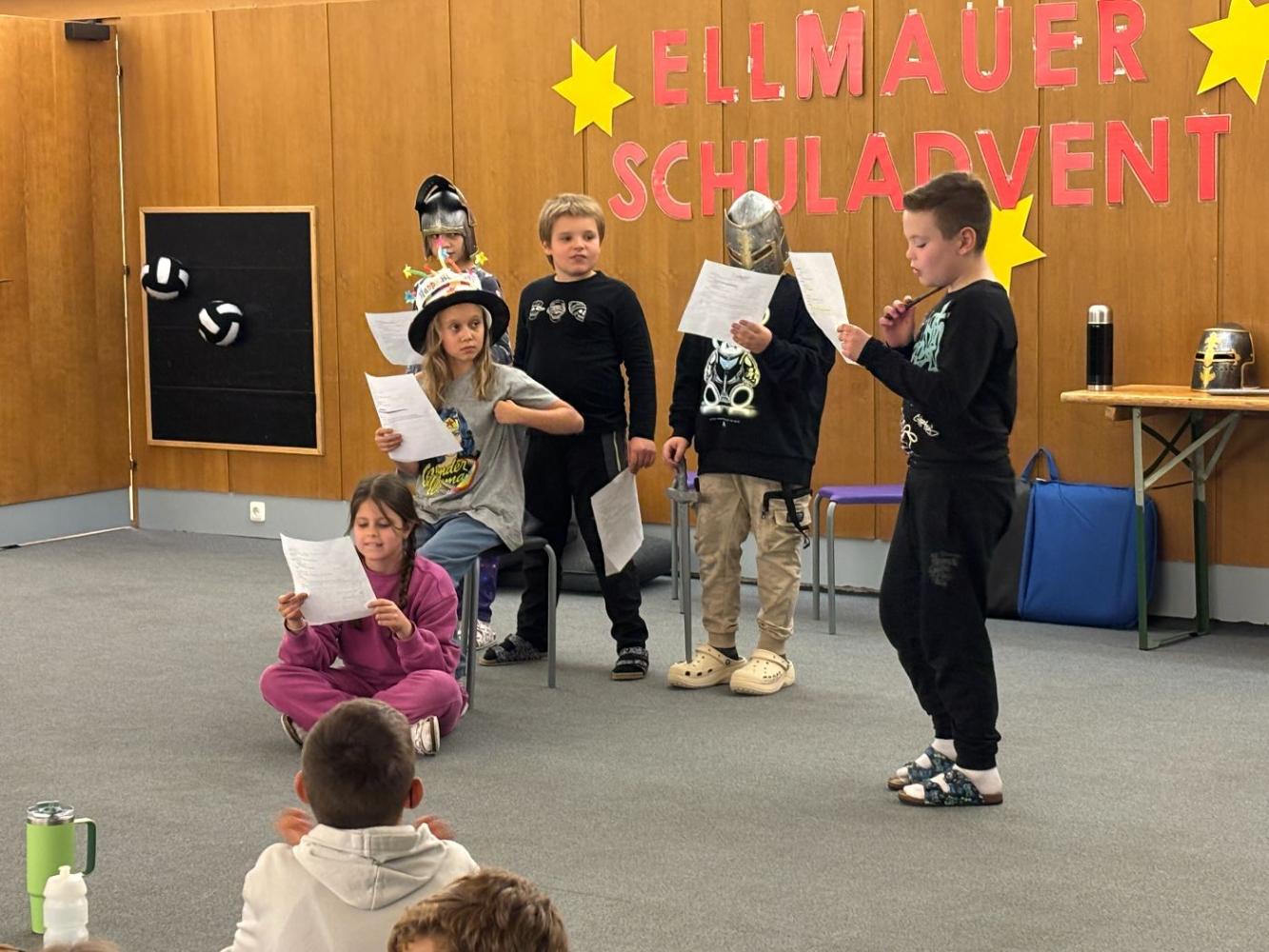 Die Klassenlehrerinnen Sandra Gugglberger und Irene Zott bereiteten in Teamarbeit abwechslungsreiche Stationen vor, bei denen die Kinder in die Welt des Mittelalters eintauchen konnten. Dazu gehörten unter anderem das Basteln von Ritterschildern, das Schreiben mit Feder und Tinte, das Stempeln eines persönlichen Siegels, ein kleines Kinoevent mit Popcorn sowie das Einstudieren lustiger Sketche, die zum Lachen und Mitmachen einluden. Unterstützt wurden die Lehrerinnen dabei tatkräftig von den Kolleginnen Eva-Maria Berger und Sabrina Wieser – herzlichen Dank für euren großartigen Einsatz und eure Mithilfe!