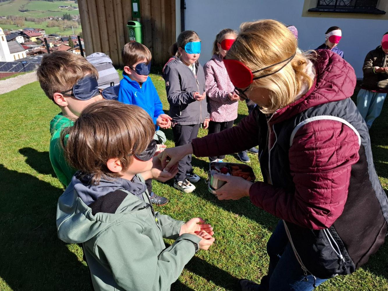Ein Highlight des Tages war die Mutprobe „Blindverkostung“. Mit verbundenen Augen durften wir verschiedene Lebensmittel kosten und am Geschmack erkennen, was nicht nur Mut, sondern auch Vertrauen und Konzentration erforderte. Diese Erfahrung war für viele aufregend und sorgte für viel Gesprächsstoff.