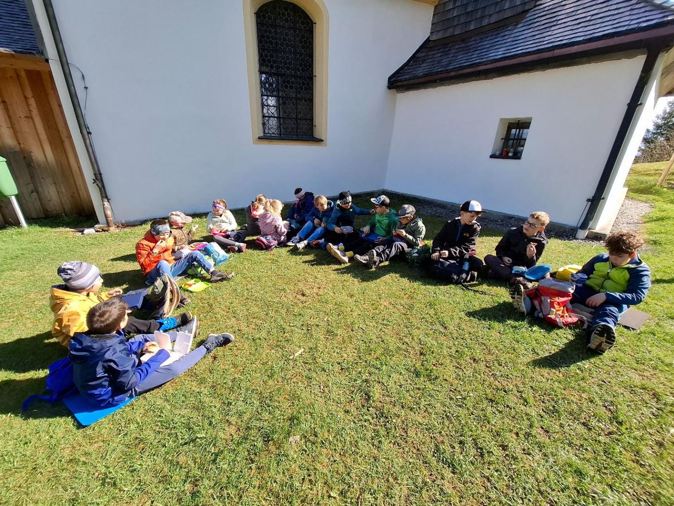 Unser Weg führte uns vom Kapellenpark aus hinauf zur Kapelle. Schon während der Wanderung konnten wir die Natur bewusst wahrnehmen und uns auf das Element Erde einstimmen.
