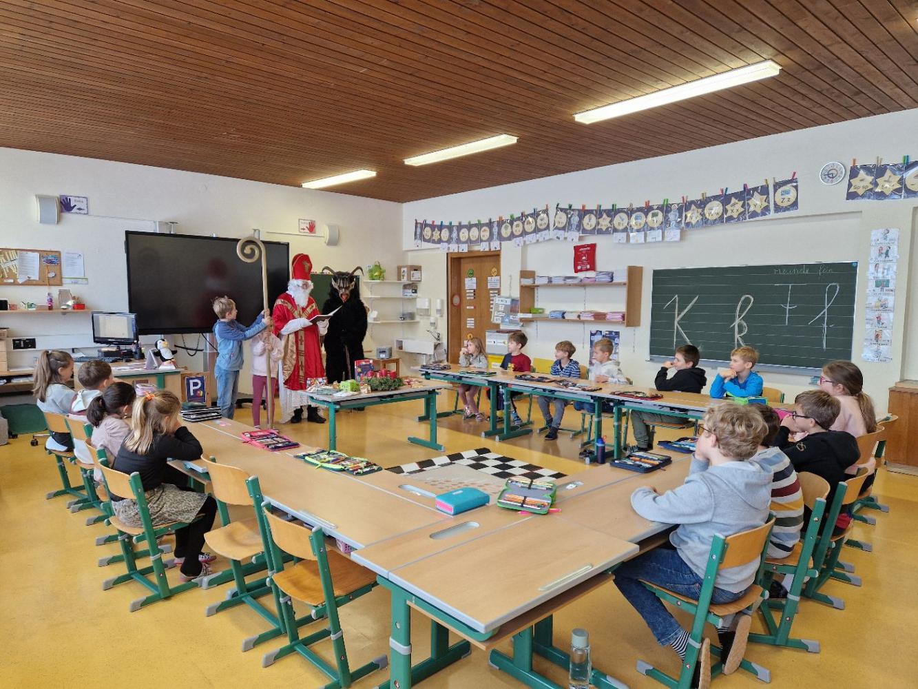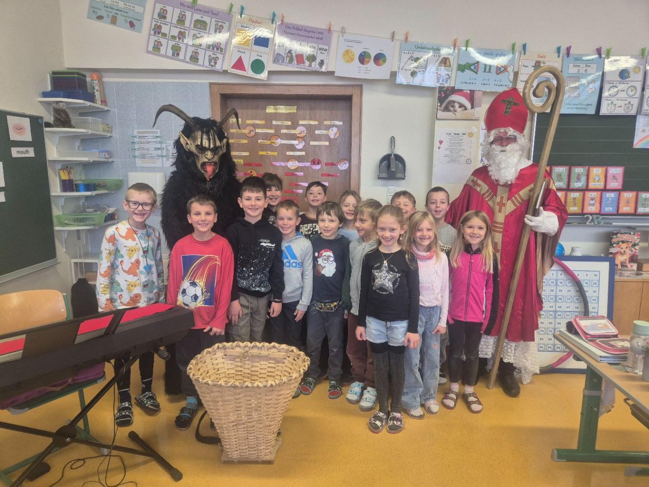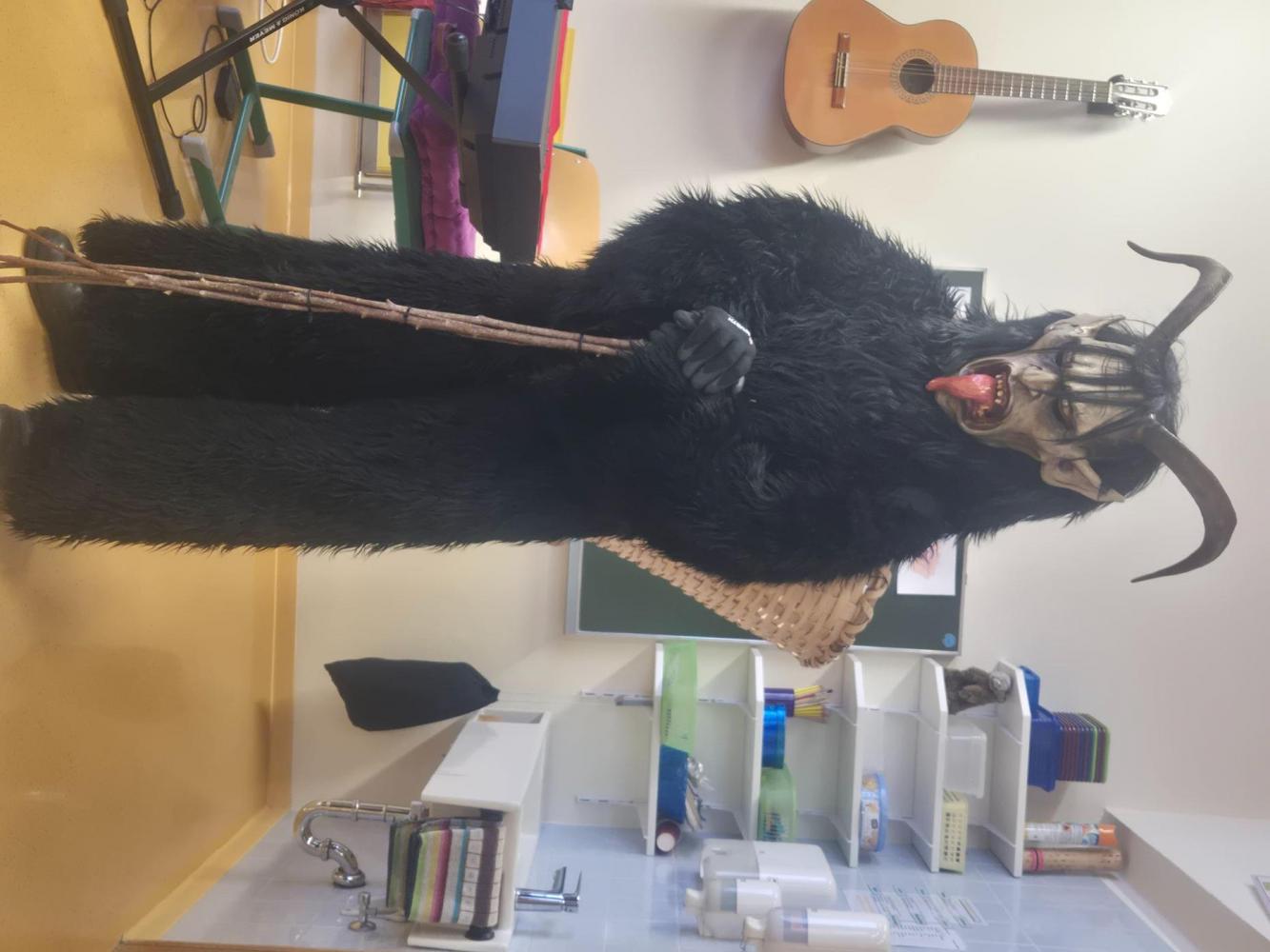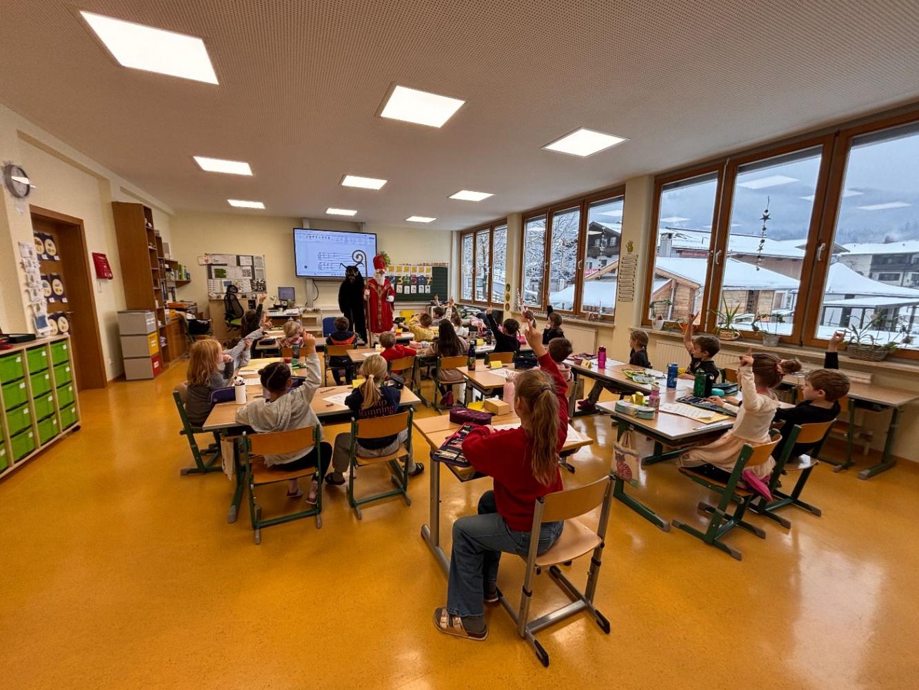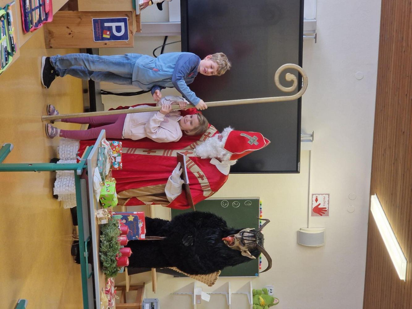 Gemeinsam mit seinem schaurigen Begleiter, dem Krampus, begrüßte er die Schülerinnen und Schüler in ihren Klassen.