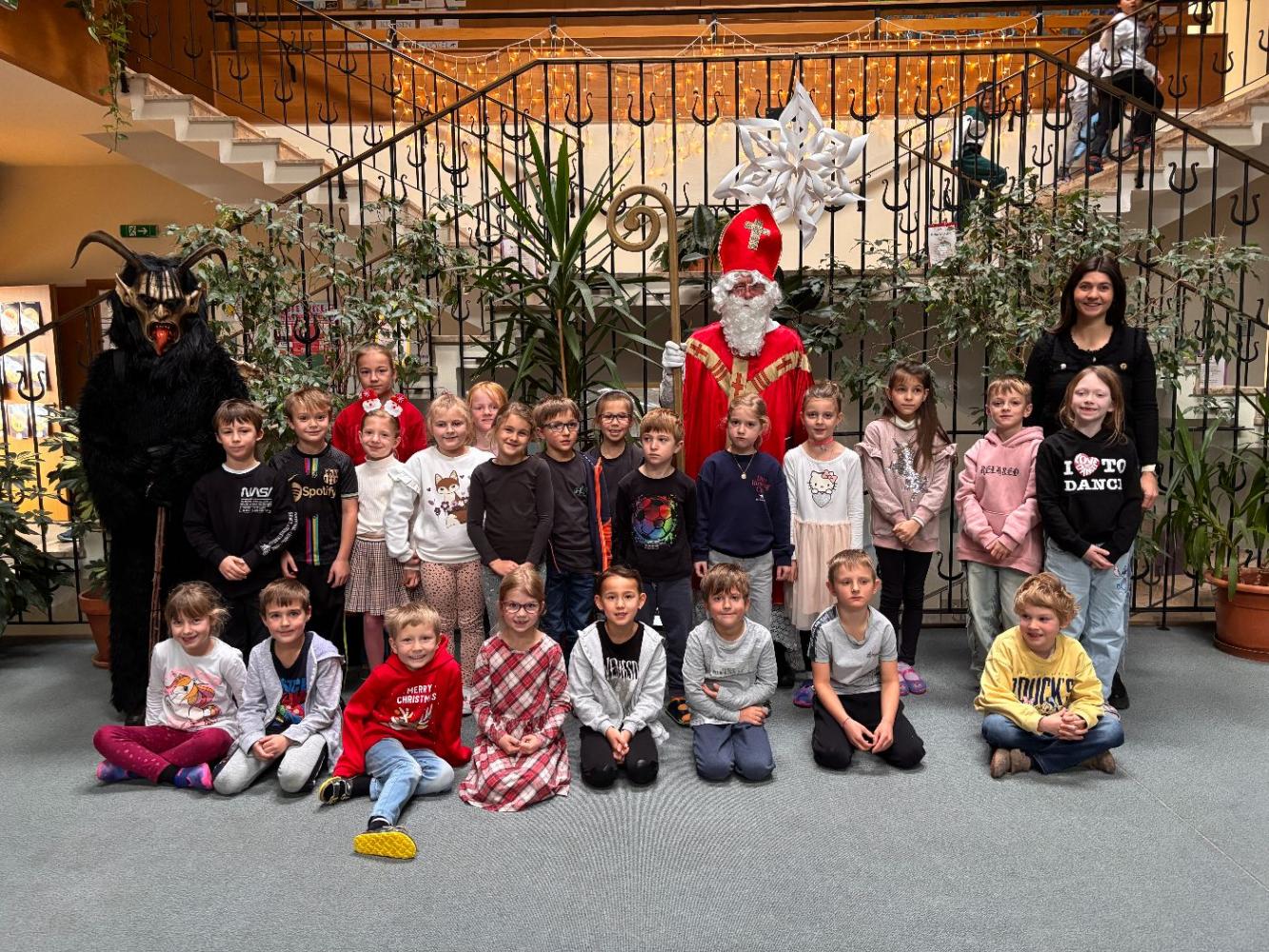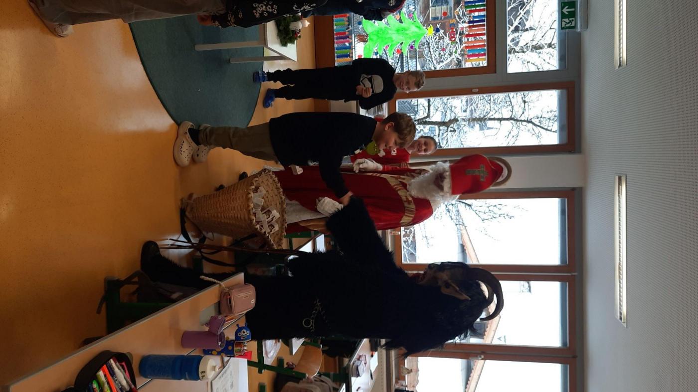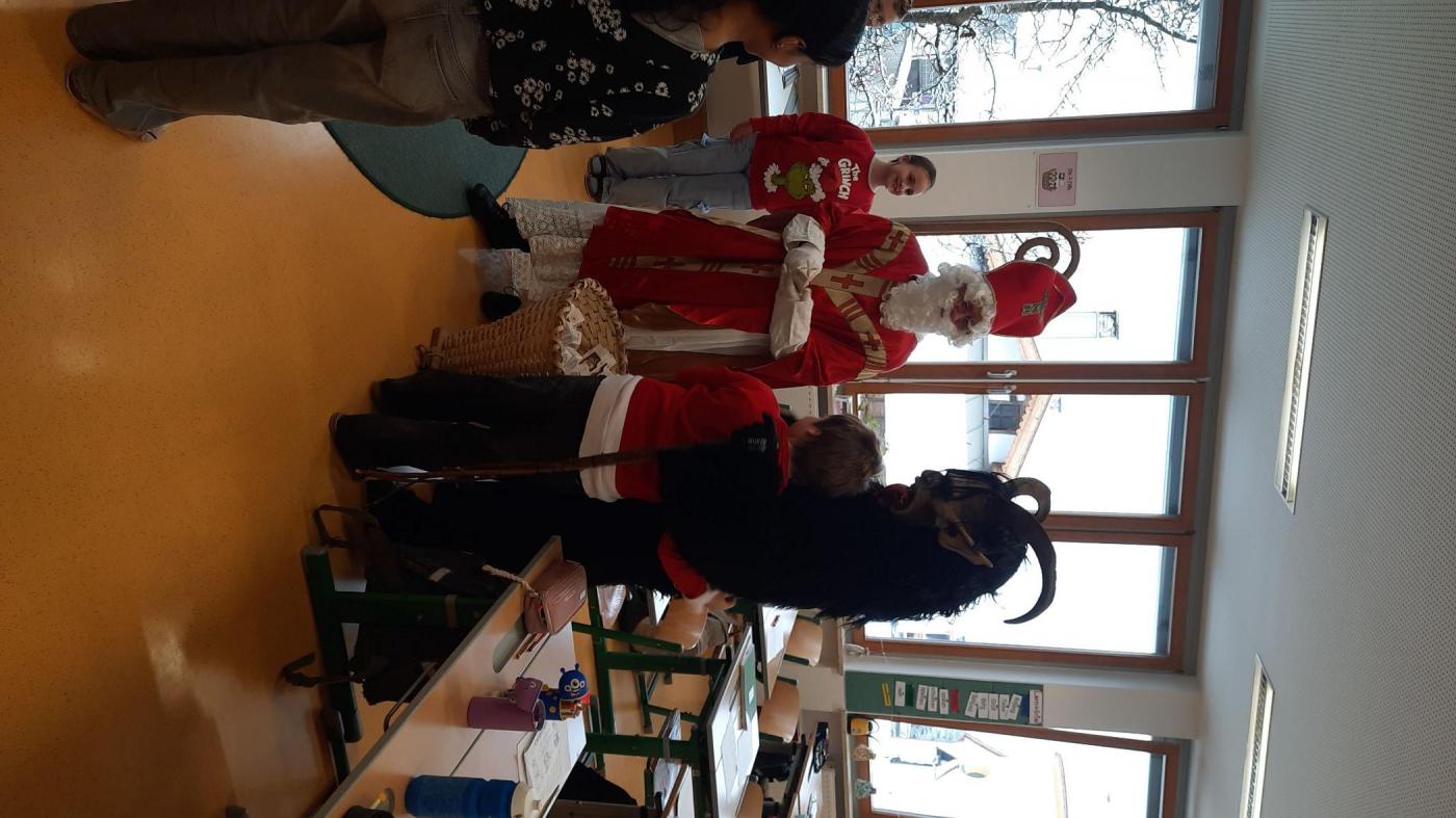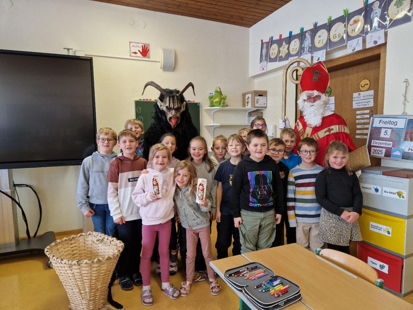 Gemeinsam mit seinem schaurigen Begleiter, dem Krampus, begrüßte er die Schülerinnen und Schüler in ihren Klassen.