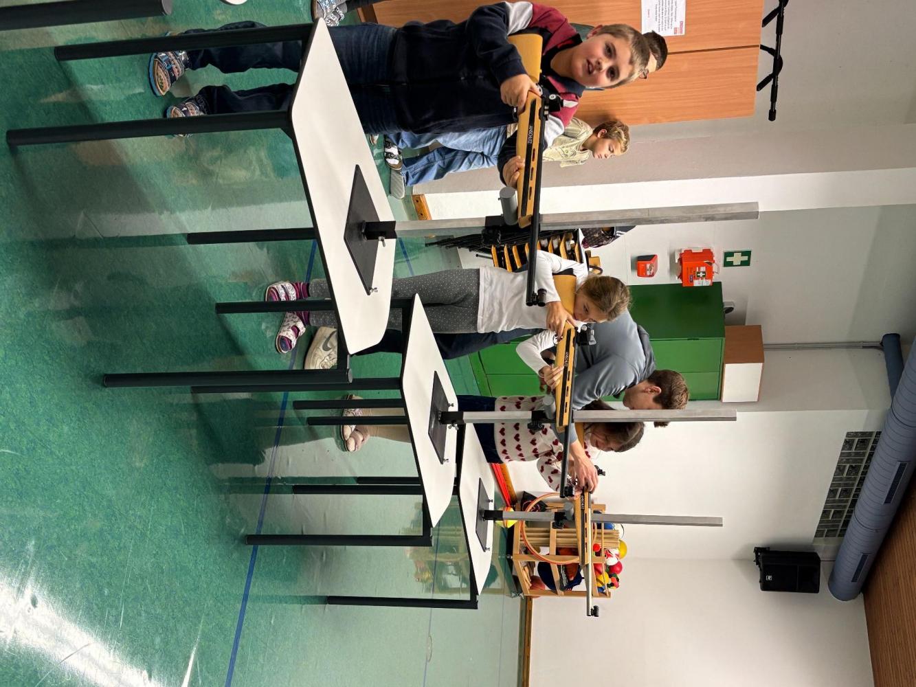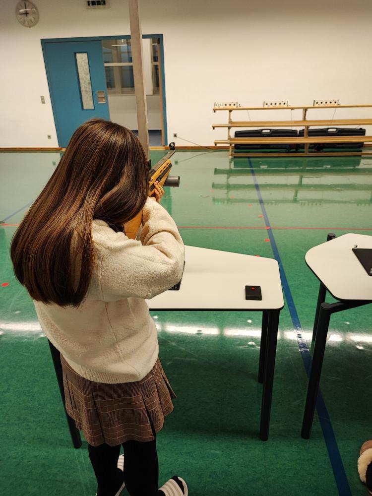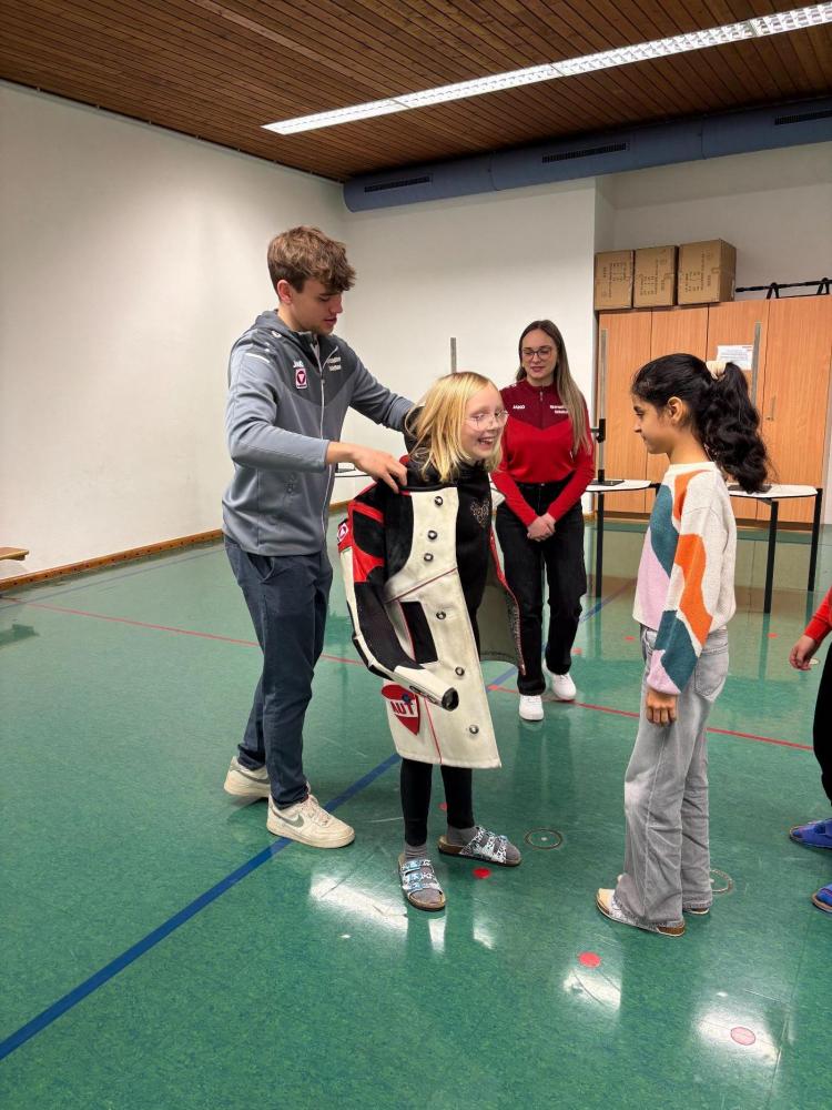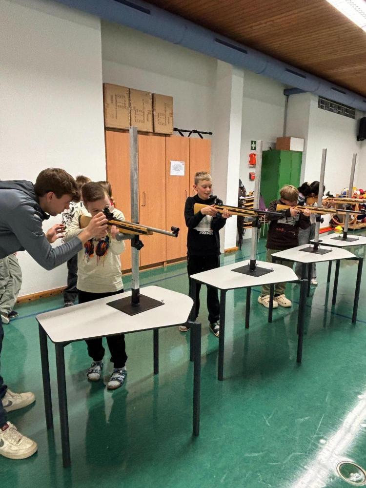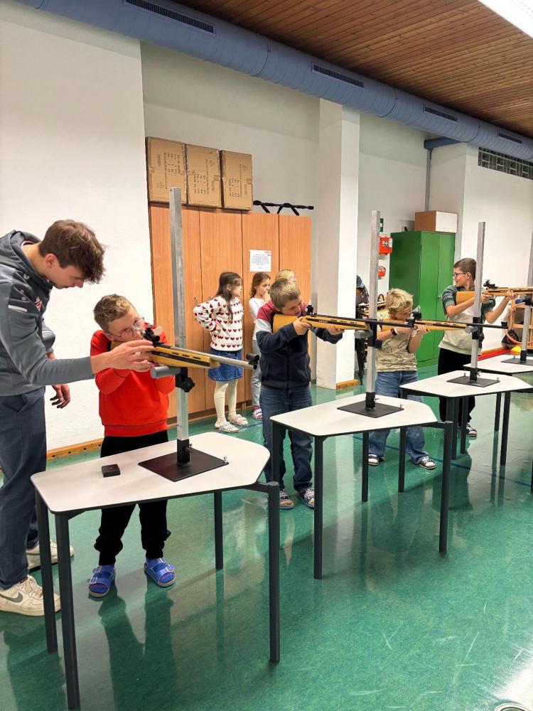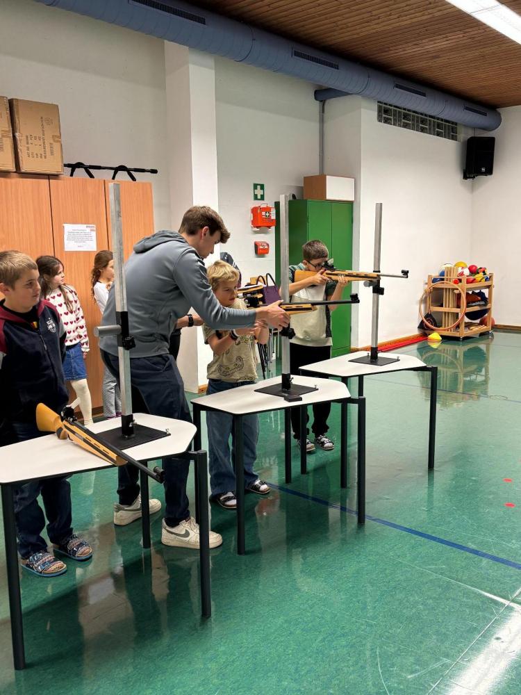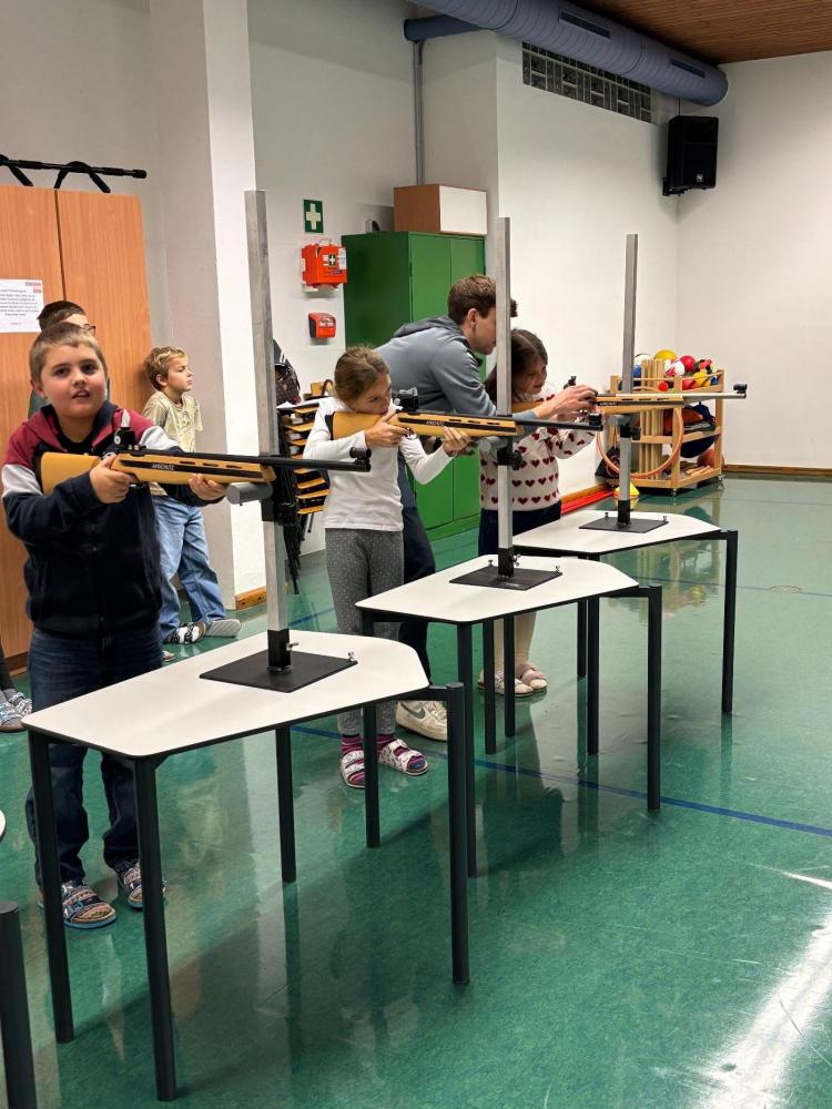 Die Kinder durften anschließend selbst aktiv werden und unter Anleitung mit Lasergewehren verschiedene Übungen ausprobieren. Dabei standen Konzentration, Körperhaltung und ruhiges Atmen im Mittelpunkt. Viele Schüler waren überrascht, wie viel Feingefühl und Disziplin dieser Sport erfordert.