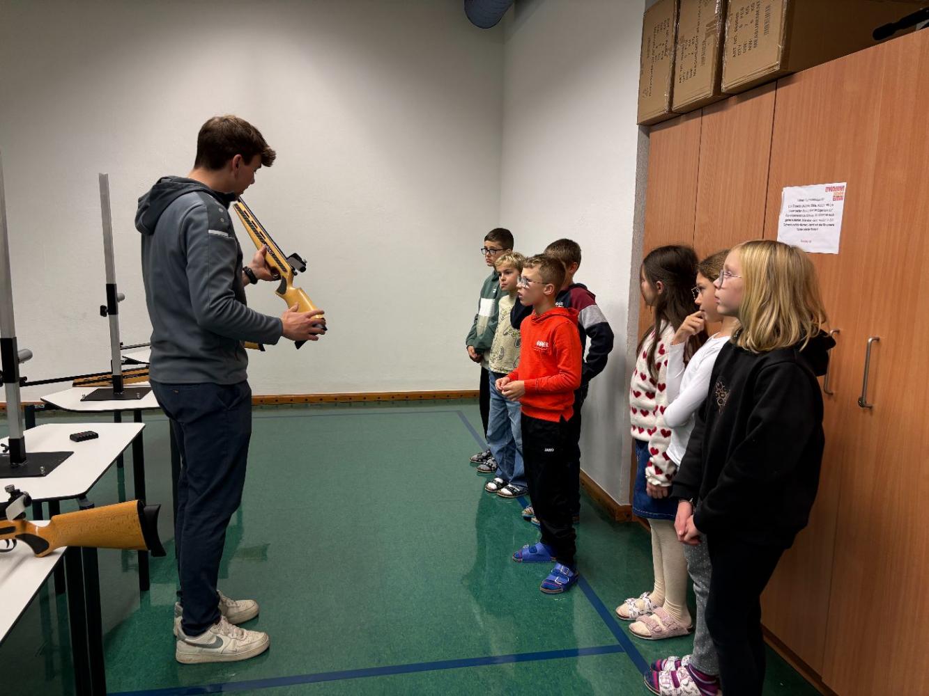 Die Vereinsmitglieder stellten den Schülerinnen und Schülern ihren Sport vor und erklärten die wichtigsten Regeln rund um Sicherheit, Ausrüstung und Technik. Mit viel Begeisterung beantworteten sie zahlreiche Fragen und gaben spannende Einblicke in den Schießsport.